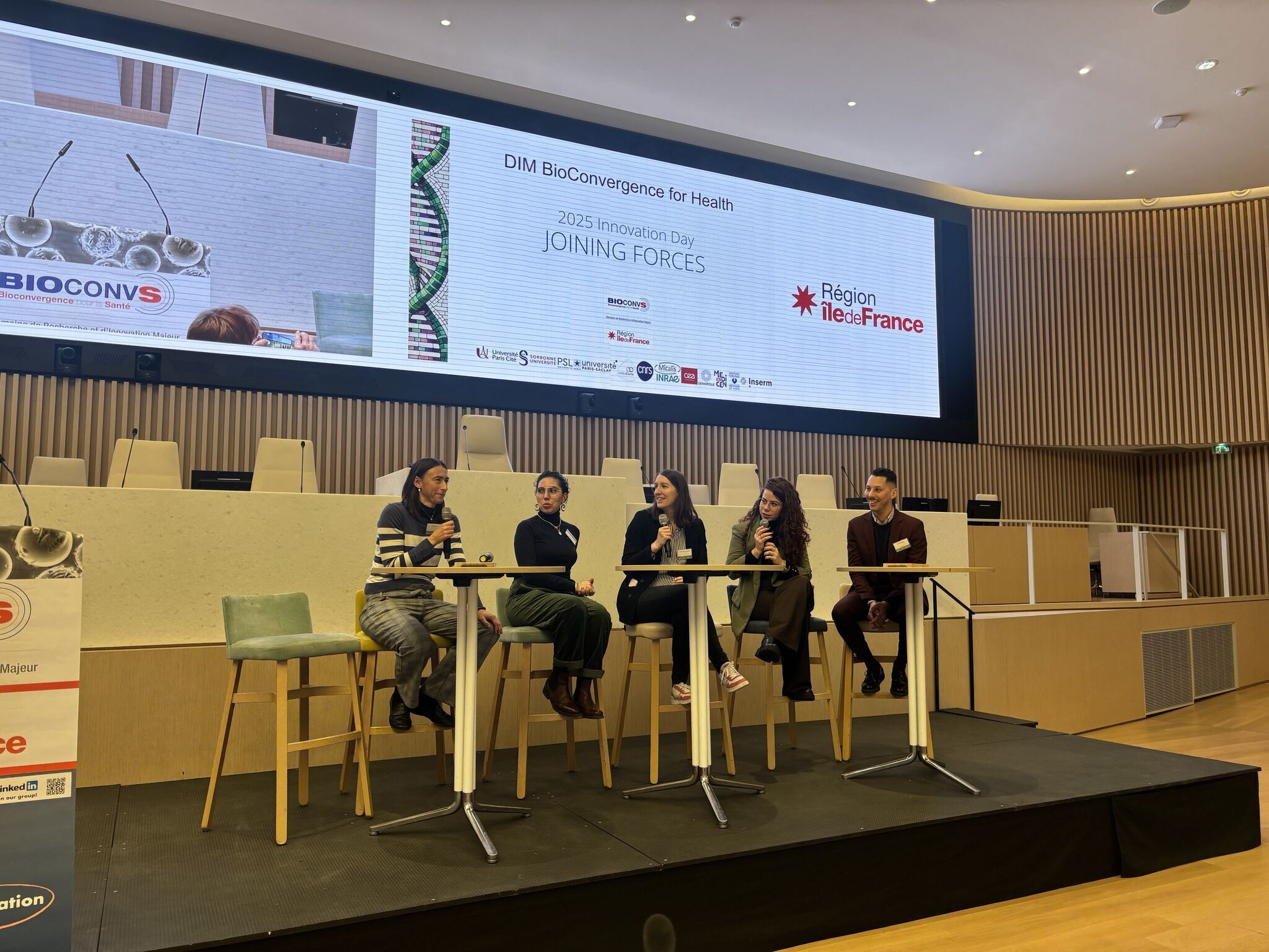 The DIM BioConvS 2025 Symposium took place on November 26 at the Conseil Régional d’Île-de-France. This year’s Innovation Day, titled Joining Forces,celebrate the power of collaboration at the crossroads of synthetic biology, biotherapies, and technological innovation. Nearly 250 participants attended a dense program of scientific and innovation-focused talks, enjoyed numerous networking opportunities, took part in a lively poster session, and visited the platforms and other partners present in our exhibition village. If you missed the event, or if you can’t get enough, take a look below at our photo gallery as well as a selection of videos from the conference.The event was feature international speakers, interactive sessions, and opportunities for networking and exchange.